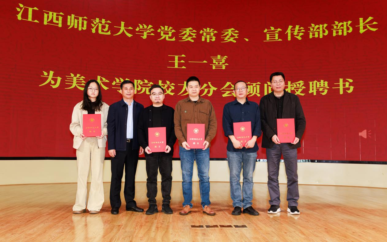 校友办主任、校友总会秘书长许靓静宣读“中正大学 — 江西师范大学校友会美术学院分会” 批复函,并宣布理事会名单。随后,杨卫军为美术学院校友分会当选会长张鉴瑞颁发聘书,王一喜为美术学院校友分会顾问杨震、封治国、王向阳及王汇文颁发聘书;张鉴瑞为当选副会长、秘书长、副秘书长、常务理事、理事颁发聘书。