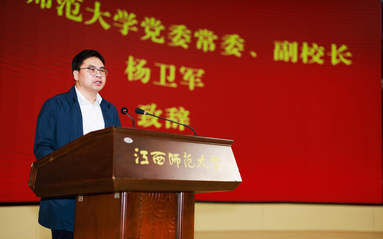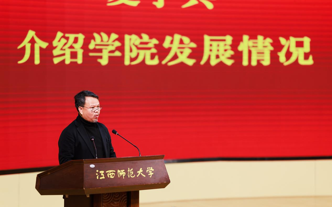 大会在庄严的国歌声中拉开序幕。杨卫军代表学校向从全国各地前来参加大会的校友们表示热烈欢迎,回顾了学校八十五年来“有年头、有灵魂、有影响”的历史底蕴和成就发展,介绍了学科建设、人才培养、科学研究、社会服务等方面取得的成就,肯定了美术学院是学校学科建设版图中极具特色与活力的重要一极,是“江西美术教育的摇篮”。他希望美术学院校友分会能够充分发挥传承师大精神、凝聚校友力量的重要作用,成为有温度“情感纽带”、务实的“合作桥梁”、有作为“发展推手”,为学校发展、学院建设和社会文化繁荣贡献美术的力量。