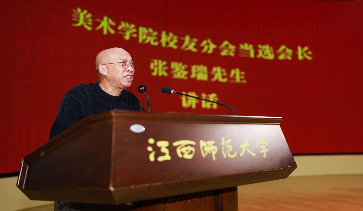 首任会长张鉴瑞深情回顾了学院的发展历程,总结了美院学子善于观察的总体特征,具备知书达理、坚韧不拔的基因,希望搭建一个纯粹、开放、温暖的交流平台。让不同领域、不同风格、不同气质的校友们可以在这里碰撞思想,激发灵感,在文化艺术和其它各项领域的探索道路上互为灯塔,彼此照耀。