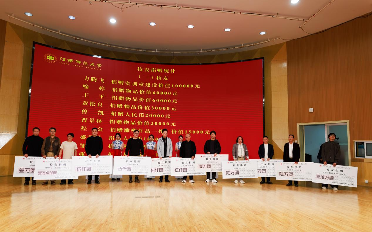 在校友捐赠仪式中,夏学兵代表学院接受丁小龙、方腾飞、王平、黄松良、曾凯、曹景林、程金、盛思民、邹建平、张永宾、、余江、董帅等校友捐赠并颁发捐赠证书。每一件作品、每一笔善款,都是美院人“艺心向党、反哺母校”的生动写照,必将滋养学院艺术教育事业的蓬勃发展